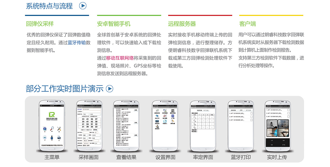 朗睿公司自主开发的终身免费的服务器软件系统,可以实现实时的回弹数值、地点坐标和照片采集